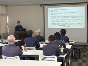 大きな交通事故を起こさないように、交通事故について、外部講師を迎えて研修を行います。