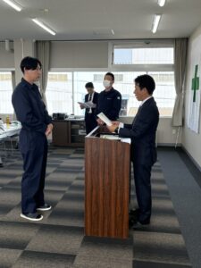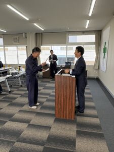 第二部では、辞令公布・永年勤続表彰・継続無事故表彰を執り行いました。